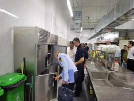 根据省食品药品安全办省市场监管局印发《湖北省高校食品安全监督执法抽查工作方案》的要求,2023年10月31日下午,省检查组组长:省市场监督管理局食品稽查局廖建华,组员:省市场监督管理局食品稽查局徐晖、省食检院黄徽一行人来我校对食堂明厨亮灶、生熟区分、洗洁精农药残留、“日管控”“周排查”“月调度”等方面进行了全面的检查。