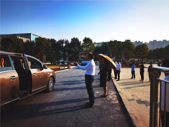 检查结束后学校领导及后勤服务中心人员与检查组告别