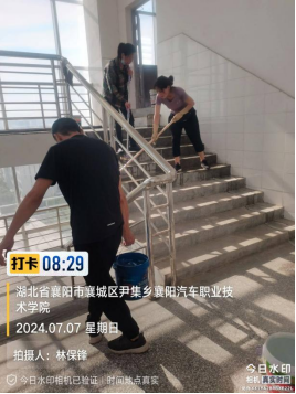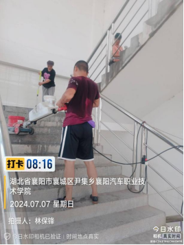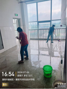7月6日至7日,后勤服务中心物业服务部组织物业服务人员,对实训楼A、B、C、D区的楼梯及楼梯扶手进行了清扫、擦拭;对地面进行了清洗、打磨,对实训楼C、D区的地面(约1000m²左右)进行了清洗和打磨。教学楼和实训楼楼顶青苔、淤泥及砖块的清理已于7月10日全部清理完成。
