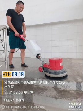 保洁人员对实训楼C、D区的地面(约1000m²左右)进行了清洗和打磨。