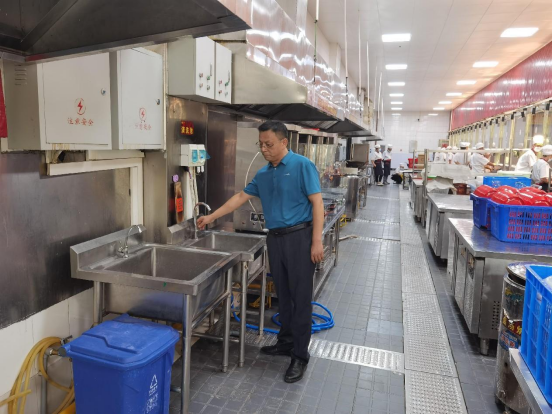 检查组对思源餐厅新进驻的餐饮公司相关工作进行了检查,余书记强调各类标识要上墙,当日餐食要留样,禁售过期变质食品,严格落实“明厨亮灶”,人员着装要统一。