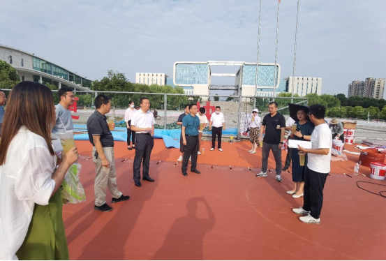 检查组对实训中心进行了检查,了解了运动场翻新工程的进度,要求翻新工程要高质量、高标准的完成。