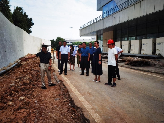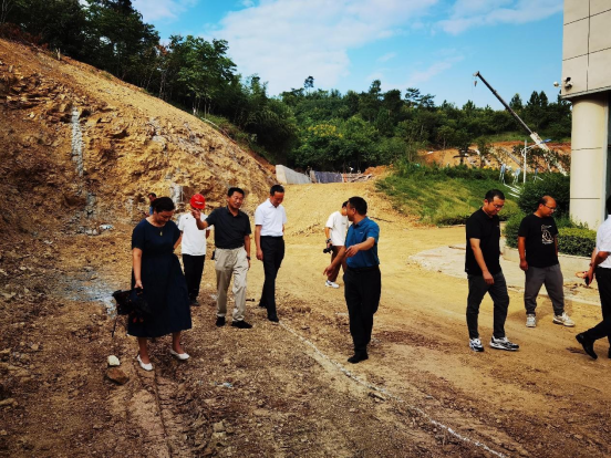 检查组了解图书馆周围山体滑坡治理情况,余书记建议将挡土墙墙体做成文化墙,营造浓厚的汽车文化氛围。