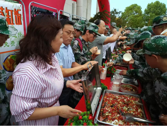 9月17日,校长程传红、副校长王晓红、纪委书记李剑参加鱼宴活动,与在校师生和军训教官们分享美食。学校食堂将捕捞的鱼类精心烹饪,免费提供给师生品尝,除此之外还精心准备了其他美食。