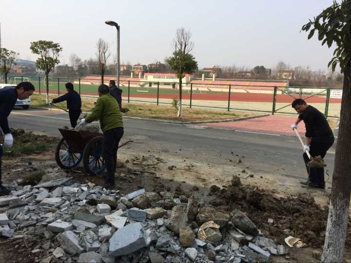 2017年3月8日,为迎接“三八”妇女节的到来、预防春季疾病传播,总务处和后勤公司组织科室行政人员到食堂周边清理卫生死角和建筑垃圾,本着“我奉献 我快乐”的精神,发挥党员模范带头作用,为建设美好校园做贡献。